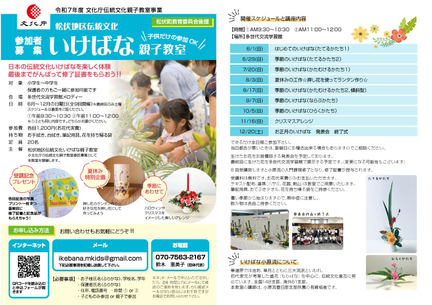 ※当教室は、令和7年度文化庁の伝統文化親子教室事業に採択され、松伏町教育委員会の後援で開催致します。